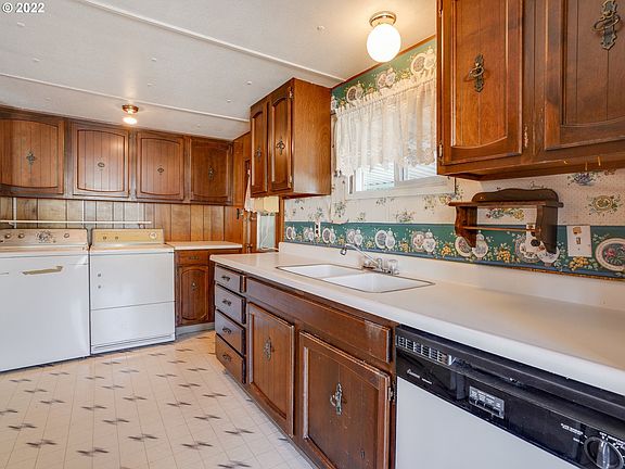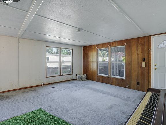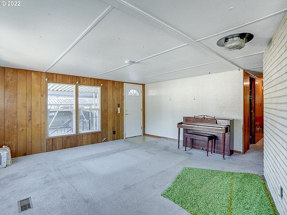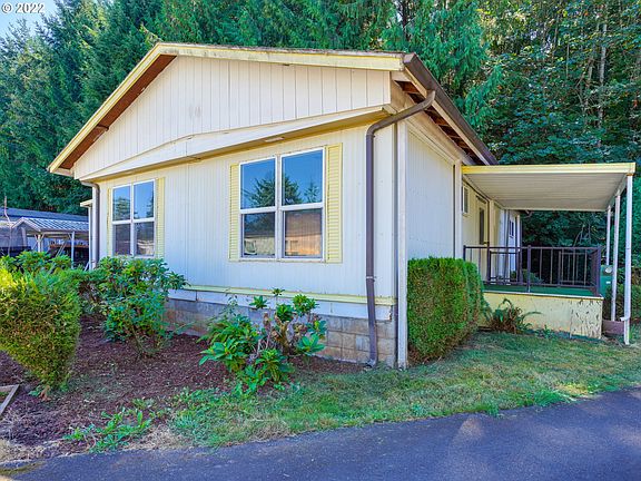 2 bdrm home with carport, 2 storage sheds & two decks with awnings, sweet location at the back corner of Hood Chalet park, bordering the trees for shade & privacy & next the driveway to gated RV pkg (included for owners), convenient to downtown Sandy restaurants, community ctr, shopping & busline. Park amenities include inground pool, on site manager, RV storage, and rec room/clubhouse w/kitchen. Vinyl windows, furnace approx 10 yrs new, Washer, dryer included. Low space rent.