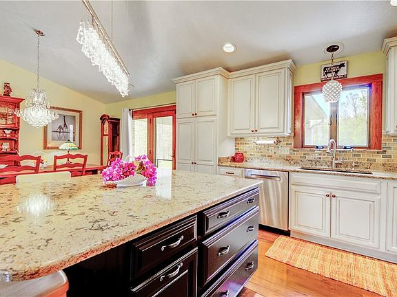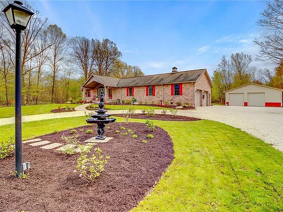 TIMELESS BRICK RANCH DREAM HOME! Having been completely remodeled inside, it boasts an expansive open floor plan. Enter into a beautifully appointed kitchen and great room/living room with vaulted ceiling. Custom details abound: the kitchen features high end appliances and so many design details to impress guests and make your wildest cooking dreams come true. You will enjoy the 6 burner Monogram gas stove with matching professional hood, the Moen touch free faucet with reverse osmosis drinking faucet in the Kohler sink. Details are too many to mention but I must point out the hidden microwave recessed into a spacious island with Cambria countertops, large roll out pantry shelves, custom designed tile back-splash and designer crystal light fixtures. Custom made doors with mother of pearl embellished peacock handles in the great room close off the living area from the 2 bedrooms and bathroom on the other side. The master bedroom with master bath and walk in closet offer privacy, being located at the opposite end of the house. New hardwood floors throughout the main living area, glass block basement windows installed in 2014, new carpeted family room & additional kitchen in basement in 2018, and all 3 bathrooms are fully remodeled. Upgrades include: new gutters in '15, drainage system in '18, cement sidewalks in '18, pole barn with electric and cement floors in '14. All this comes with scenic views of a nature loving pond on a wooded lot!