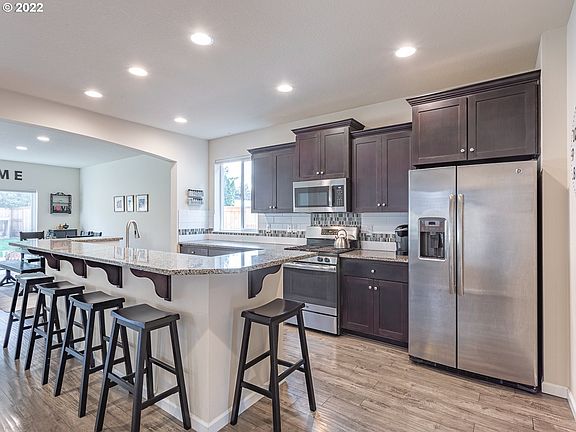 Charming 3121 sq ft, turn-key home in Happy Valley School district has 5 bedrooms, 3 full baths plus a large bonus room. One bedroom and full bath on main. Three bedrooms with walk-in closets. This well-maintained home has an open concept floor plan, great for entertaining. Large, level, fenced backyard. Top rated schools! Fantastic location close to shopping, dining and schools. MAPS: enter neighborhood from 172nd, NOT TROGE