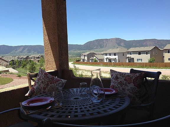 This stunning 5 bedroom & 3 bath Ranch-style home with walk-out finished basement boasts incredible views of the Front Range, as well as an abundance of upgrades; including, a fully landscaped front and back yard (~1/4 ac.), hardwood & tile floors on the main level, and a gorgeous kitchen with vaulted ceilings and stainless steel appliances that opens up to a family room and is perfect for cooking and entertaining. The main level features the master bedroom with a 5-piece bath and walk-in closet. Also on the main floor, is an office/bedroom with French doors, full bathroom and laundry room. Downstairs you will find an elegant family room with French doors and a walk-thru to a large patio and fully landscaped back yard that is perfect for outdoor dining and entertaining. There are 3 large bedrooms and a full bath downstairs. This house shows like a model home and is located in the best public school district in Colorado Springs (District 38).
