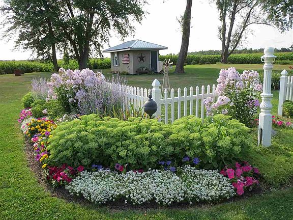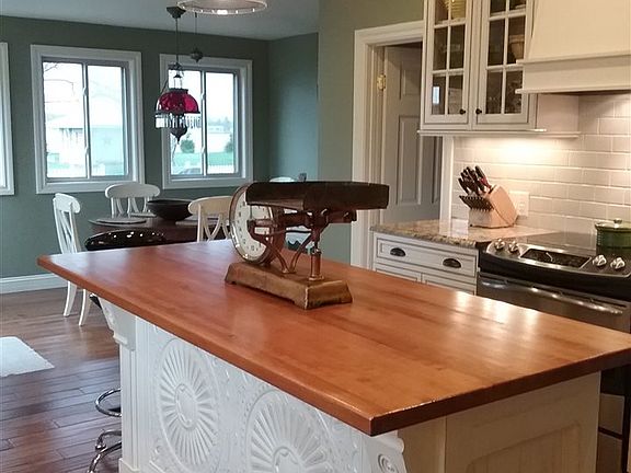This picturesque 9.1 acre property features a remodeled farmhouse with 3 bedrooms, 2 full baths, Custom designed top of the line kitchen with tons of storage, granite countertops, drop-in smooth cooktop range, subway tile backsplash,built in garbage bins and wood paneled dishwasher. Custom built island.Beautiful hand scraped oak floors on most of first floor. Large master bedroom with sitting area and large his/her closets. Standing seam metal roof, a picture-perfect stocked pond with fish house, pier and large windmill. Large deck. Perennial garden with picket fence. Grape arbor, apple trees and rhubarb plants. Wildlife abounds here. Lots of space for horses, chickens, organic gardening, etc. Property has a huge detached 3 car heated garage and one smaller building, both with electricity. Immaculate smoke free, pet free home. Tastefully decorated throughout. Room sizes and total square footage are approximate. Note: Outside: dinner bell by back door entrance and hitching post and cupola in perennial flower garden do not stay. Inside - Antique light fixture in dining room does not stay.
