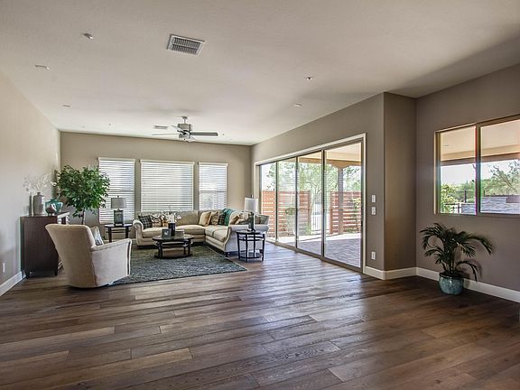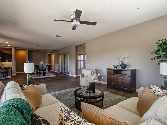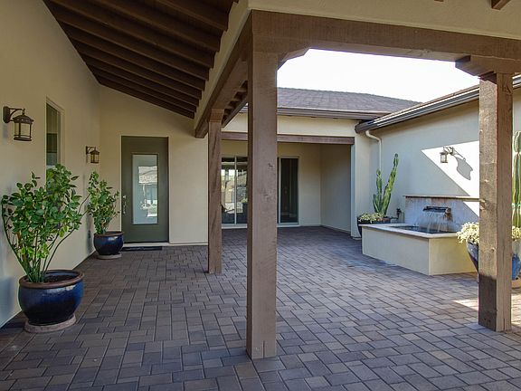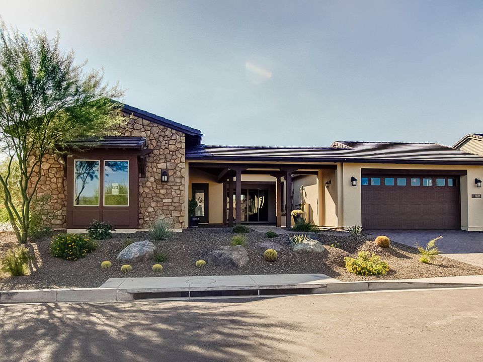 MOVE-IN READY Designer Home with 3 bedrooms + den & 3.5 baths in just under 3,000 SqFt with an open great room floor plan and a welcoming paver courtyard with pergola and water feature. The gourmet kitchen offers an abundance of dark maple staggered cabinetry w/crown molding, granite counters, backsplash, gas cooktop & stainless range hood, & wall ovens. Large walk-in pantry & island w/breakfast bar seating. Wood-look tile floors throughout living area & kitchen; tile in baths, carpet in bedrooms. The master retreat has private exit to the patio & a spa-like bath with dual vanities, soaking tub & oversized shower w/seamless glass & tile surround. Secondary bedrooms have en-suite baths. ''Smart Space'' has tons of cabinetry & counter space & two built-in desks. 4 CAR GARAGE. Trilogy at Ver River is just minutes from Tonto National Forest. Verde River Golf & Social Club ewill encompass a championship golf course, signature restaurant, indoor/outdoor bar, fitness facility, pool & spa facilities, tennis, pickle-ball and more!