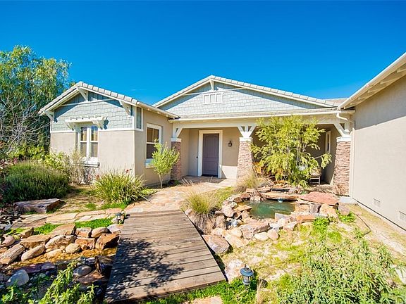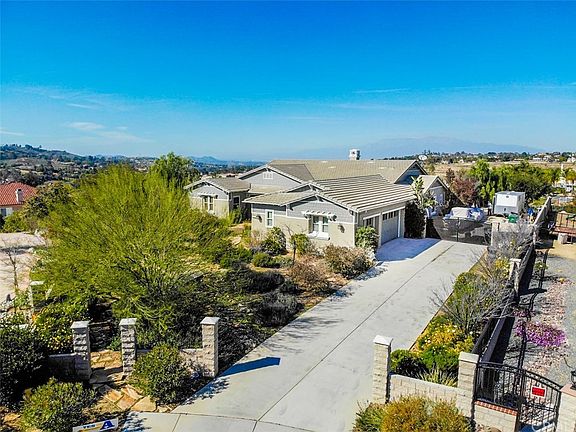 Absolutely amazing single story horse property estate at the end of a cul de sac with views that stretch for miles! This 4 bedroom, 3 bathroom home has a wide open floor plan with a gourmet kitchen for every entertainer. In the kitchen you will find a huge island (with sink), large walk in and butler's pantries, double oven, built in microwave, and granite counter tops. As you walk in the front door you are greeted by a grand entrance, formal living room and dining room, and the 4th bedroom (currently being used as an office). The master bedroom is oversized with a door leading out to the back yard for easy access to the fire pit , built in barbecue, and in ground spa/plunge pool...Ideal for that summertime fun! The master bathroom has a huge walk in closet, separate tub and shower, dual sinks, and new flooring. The 2 additional bedrooms are good size with a jack and jill bathroom. The large laundry room leads out to the oversized 3 car garage. The home has jus been completely painted inside and out. Don't miss the huge back yard with endless views. There is plenty of room for all your toys in the huge RV parking area on the side of the home, as well as in the lower area of the huge lot. All this plus surround sound in the family room, living room, and back yard.