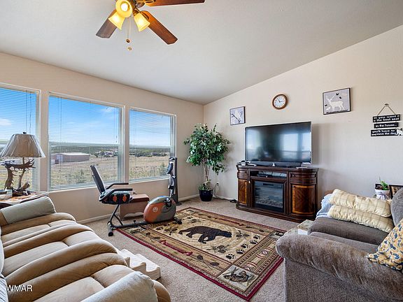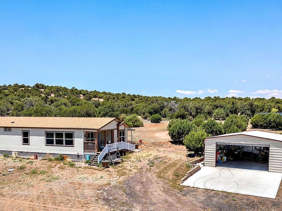 Price improvement! Located on 2.49 horse friendly acres, this 2017 3 bedroom/2 bath home backs US Forest Service. This quality built home sits atop a masonry stem wall along with a solid concrete slab. Central heating & Air Conditioning. 24 ft x 30 ft metal shop/garage w/electric and 30 amp RV service on the outside. Panoramic views of the surrounding area, There's also a 16 ft x 16 ft metal building that's been used for animals/horses in the past. Off the beaten path but close to amenities. Home comes furnished with all appliances with just a few exceptions.