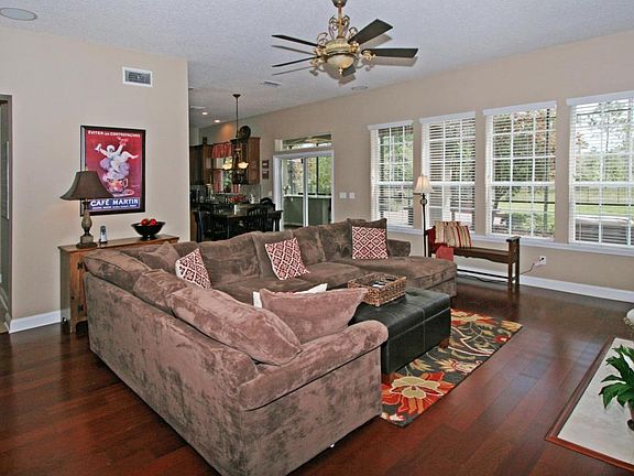 This pristine 5 bedroom 3 1/2 bath home is located on the 11th tee box in St. Johns Golf & Country Club. The Kitchen is a Cooks Delight; Granite Countertops, 42'' Cabinets, Large Island and Gas Stove. Eat in Kitchen opens to the Family Room with Cherry Floors and a Cozy Fireplace. The Large Screened Lanai, Summer Kitchen and Paver Patio are a great place to Entertain Family and Friends or watch the Kids play, in the Huge, Fully Fenced Backyard. The Master Suite is on first floor, with a Bay Window and Beautiful Bathroom with Jetted Tub and Walk in Shower. Upstairs are 3 generously sized bedrooms, Bonus Room and 2 full baths. This home is freshly painted, clean as a whistle, and ready to move in! Come enjoy all of the Great Amenities; Internet and Cable are included in your HOA fees.