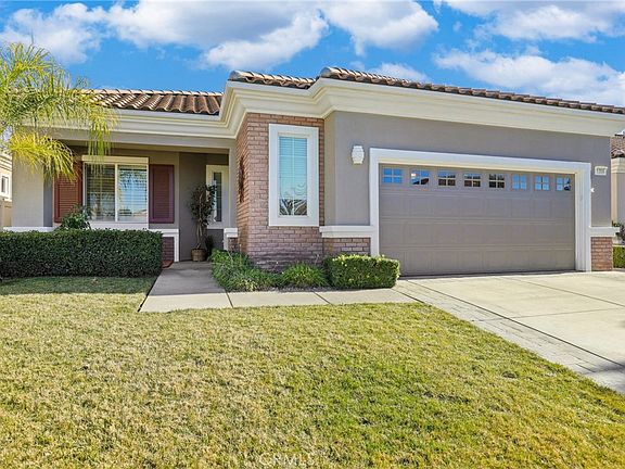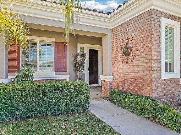Wonderful home right on the 15th hole of the golf course for year round green views of the 13th hole! Beautiful updates to enjoy including plantation shutters on the windows, recessed lighting, and an Alumawood patio cover to enjoy al fresco meals under. The exterior was painted 3 years ago. The kitchen has Corian countertops, coordinated backsplash, stainless steel appliances, and espresso colored cabinets. Off the kitchen is a great laundry room with cabinet space, a sink, and more cabinets over the washer/dryer for extra storage. The open family room and dining space are anchored by a cozy fireplace. The sliding door from this space leads out to the well manicured backyard. Off the hallway are two bedrooms, two full bathrooms, and an additional bonus room that can be used as an office. The primary suite is situated at the end of the hall and has a walk in closet and a lovely en suite bathroom with a dual sink vanity, soaking tub, and separate stand up shower. The interior is clean with freshly shampooed carpets and ready for its new owners! The Solera Oak Valley Greens Association offers resort style amenities including a beautiful pool and spa and controlled access. This 55+ community is located conveniently located near local markets, dining options, Morongo Golf Club, and easy access to the 10 and 60 freeway.