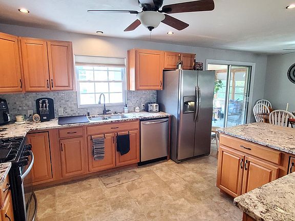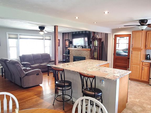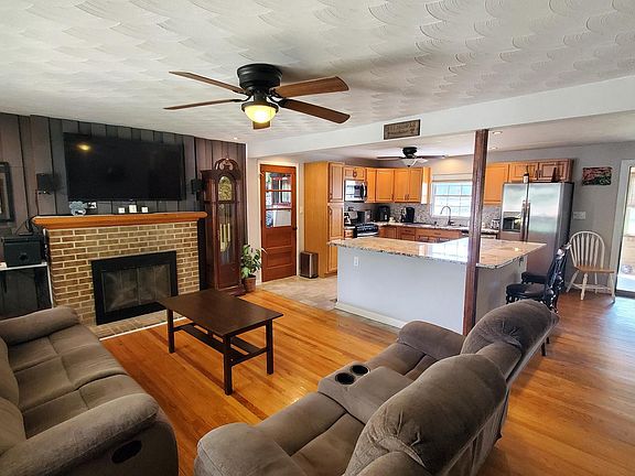Highest and best due by 8/6 at 8 pm. You won't believe your eyes when you enter this home. The Living, Ding and kitchen are all open, Kitchen has stainless appliances and granite tops, tile backsplash and tile floors, the dining and living rooms have hardwood floors ceiling fans, a brick fireplace with gas logs .opening into an enclosed porch .All bedrooms have hardwood floors, the bath has just been remodeled with a title shower, very nice shower doors ,wainscoting and a beautiful vanity , The lower level has a kitchenette with microwave and refrigerator, a launder room , a theater room with gas fireplace ,TV and surround sound and accent lighting . you enter through barn doors , there is also a pool table room with a dart board and vinyl plank flooring .Large front porch for relaxing . Store everything in the shed with electric, the 2 car garage with opener or the floored attic above the garage . Act fast !
