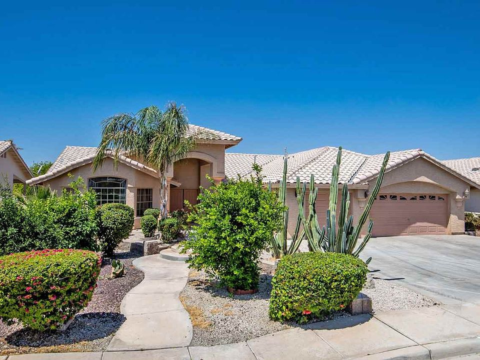 Falls Ranch 4 bed, 2 bath, 3 car garage, POOL home ready for new Owners! Tile throughout, even on the patios! Granite counters, HUGE kitchen, decorative chandeliers & LED can lights. Neutral 2 tone paint. Double doors to front entry and the master bedroom. Master bed has a separate sitting area and master bath has double vanities & soaker tub with travertine tile surround. Large 3 car garage w/ storage area. Walk along the elevated stone path from back patio to the sparkling blue fully fenced pool and spa!