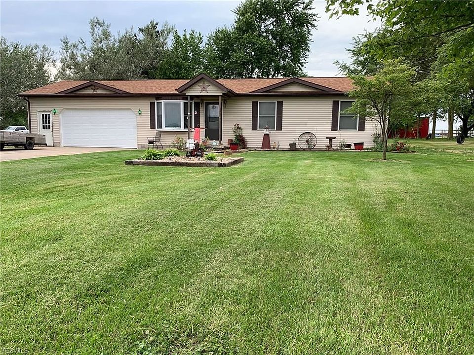 Convenient, Rural, Ranch with Open Design! 3 Bedroom, 2 Baths and 2.5 car garage located on a full acre lot. With covered shelter and shed. Rural water and working well. Extra-wide, concrete drive.