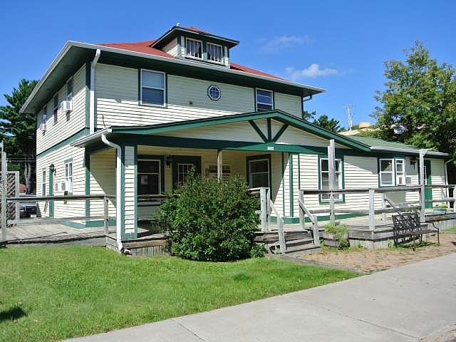 The upper level of this property is a 2 bedroom apartment, currently leased. Main floor has been converted to office/retail space, but could be turned back into living units. Lower level is a very large commercial space on the main street of downtown Three Lakes, with additional exposure on city street to the back. Parking is available in front and rear of building. Lower level is currently in use as commercial space, housing a screen printing and embroidery business.(Real Estate Only, business is not for sale) A full length,covered front porch, leaded glass windows, and lots of wood accents add to the charm of this building. Additional features such as multiple entrances, 2 offices, large and numerous additional rooms,ample parking, and plentiful auto and foot traffic offer many possible uses for this building on prime downtown frontage. Live and work from home, or convert into possible income property.