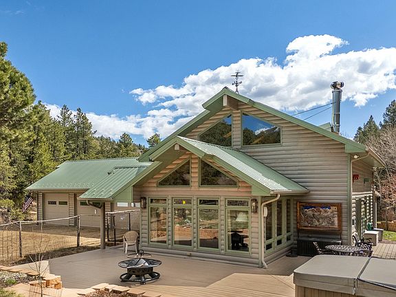 Mountain Majesty Meets Modern Comfort. Nestled at the foot of the awe-inspiring Eastern Spanish Peak, this 42-acre retreat is where rustic charm meets modern convenience. A custom-built, 2,244 sq. ft. log-sided haven, this home is a sanctuary of warmth, space, and serenity. Whether you seek a full-time residence, a private getaway, or an income-generating retreat, this property delivers unmatched peace, privacy, and panoramic views.Step inside to the open-concept living space, where vaulted ceilings and grand picture windows along with the spacious year round sunroom invite the natural beauty of Colorado indoors . The wood-burning stoves and radiant floor heating create a cozy ambiance, perfect for snowy winter nights or crisp autumn mornings. The master suite on the main level features a travertine-tiled walk-in shower and a walk-through closet leading to the laundry room. The 20' x 30' loft serves as a versatile space. Your Colorado Dream Home Awaits.