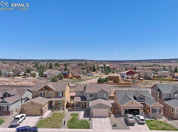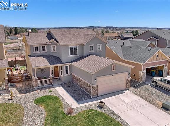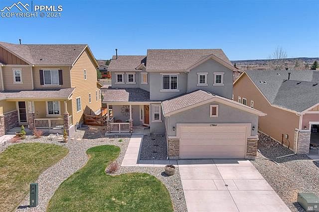 Welcome to this gorgeous Lake of the Rockies home. You will be greeted by the covered patio with seating area. The gleaming wood laminate floors on the main level are a show stopper. When you enter, there is a flex room to the right. This would make a fantastic office or dining room. The kitchen and living room have a phenomenal flow - and are perfect for entertaining. There is a large dining area (with fabulous chandelier), the living room has a custom feature wall with subway tile and wood planking. The kitchen has a walk in pantry, stainless appliances (included), and plenty of cabinet storage. The granite countertops are beautiful and functional. There is a custom mud room bench/storage area, and an additional "drop zone" with cabinetry. The main level powder bath is also very convenient. The home has a tandem 3 car garage! The upper level features a large laundry room (plumbed for a sink), a luxurious master retreat with 5 piece bath (and vanity seating area), and the additional bedrooms. The unfinished basement is perfect for both storage or to be finished for additional living space. Stucco siding is rare in this neighborhood. The back yard features an oversized composite deck - perfect for the summer months! This fabulous home is walking distance to Historic Downtown Monument, Farmers Markets, restaurants, and concerts. It is also walking distance to the neighborhood playground and Monument Lake.