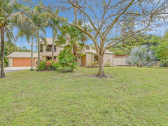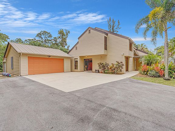 Located just west of the Turnpike and I-95, Jupiter Farms shopping center, is Bridle Lane, a much sought after paved road, with underground Powerline's, no HOA and minutes to the elementary school. This home features, , amazing side yard with a 15x30 diamond-brite finish pool. A covered orchid shade house and a sunny patio that opens up to the bright sunny country kitchen. Living room has high vaulted ceilings, country kitchen or family room, den or dining room depends how you furnish it. Owners suite is upstairs with a walkin closet, spa tub and shower and 2 vessel sinks and commode area. 2 bedrooms and bath are on1st floor. Large work shop and storage shed with separated garage. Hook-up for generator.