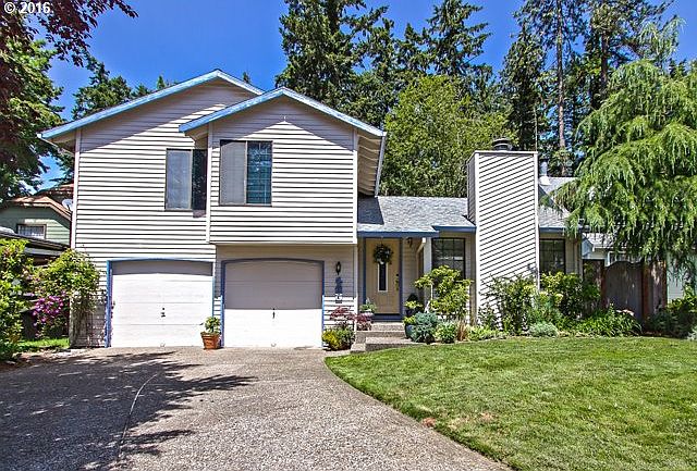 Light & bright open living space w/wood firplace, vaulted ceiling, skylights, hardwood floors, garden window. New carpet in lower level w/slider to patio.Central Air.Beautiful private fenced back yard is a gardener's delight! Backs to greenbelt. Located on a cul-de-sac. Just minutes from Nike, Intel, Costco.