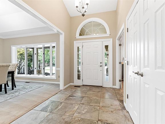 Welcome to this stunning ranch with beautiful curb appeal and a serene private lot backing to trees, a 3-car garage and a circle drive. Inside is a sophisticated study with a woodburning fireplace and French doors, perfect for a home office or quiet retreat. The spacious dining rm is perfect for hosting gatherings, while the vaulted great rm with a 2nd fireplace and pass-thru wet bar connects to the gourmet kitchen. The kitchen is a chef's dream, boasting custom cabinets, gas cooktop, granite counters, a subzero refrigerator and a breakfast bar. The adjoining breakfast rm opens to a new composite deck with views of the yard. The luxurious primary suite is a true sanctuary which adjoins the luxury bath. There are 2 additional main floor bedrms with a full bath and 2 additional half baths. The finished walk out lower level is perfect for entertaining, featuring a large rec rm with 3rd fireplace, walk behind wet bar, a 4th bedrm, full bath, and an exercise rm/hobby area.