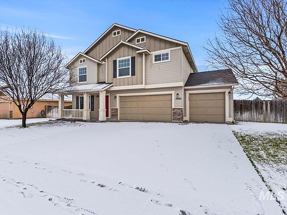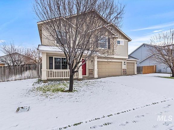 An excellent value in Nampa! One of CBH's most appealing floor plans w/2 generous living spaces, downstairs office/den, & 3 car garage. A classic front porch welcomes guests into a fresh & impeccably maintained interior featuring new carpet throughout. Open concept kitchen accented by a large island, charming lighting & upgraded appliances. The airy living room is flooded with natural light by large windows and is anchored by a beautiful gas fireplace. The upstairs host 4 spacious bedrooms, including the primary w/a private bath, dual vanities, soaker tub, step in shower, & amazing walk in closet. Utility room includes beautiful upgraded cabinetry & a pull out folding table. Closets have added storage shelving perfect for organization. Backyard is ideal for entertaining around the fire pit, or reaping the rewards of gardening with 6 raised garden beds & mature blackberry/raspberry vines. Access the back commonspace by your own gate. Ideal location to enjoy shopping, dining & schools.