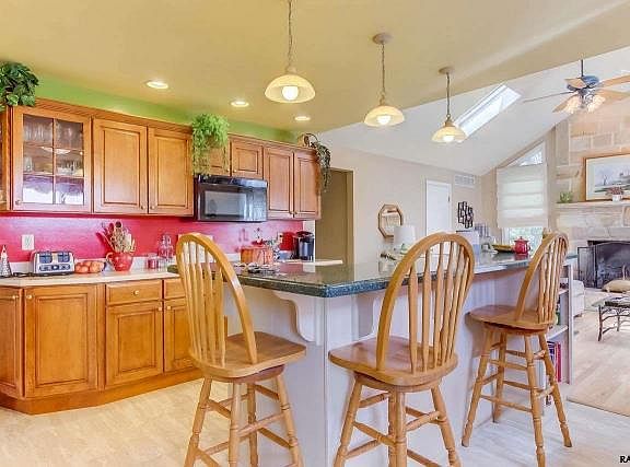 - Fireplace features: wood stove