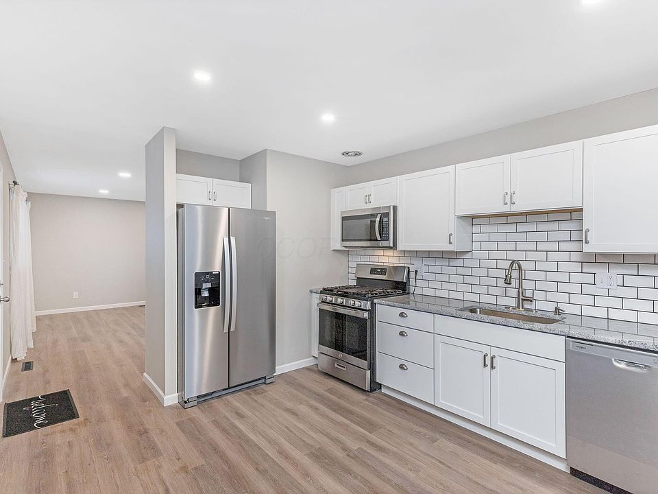 The kitchen shines with brand-new cabinets, granite countertops, full tile backsplash, and a suite of brand new appliances including a range (March 2024).