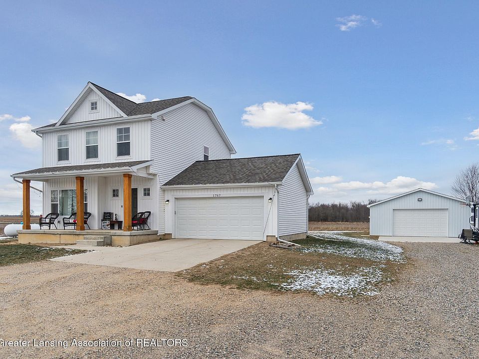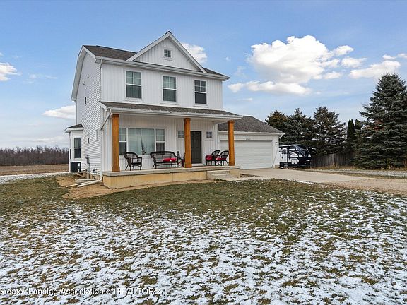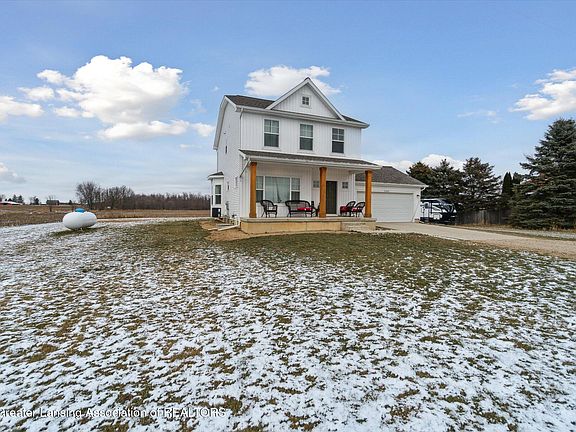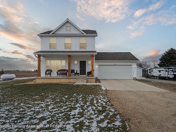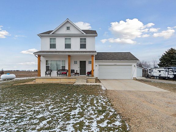 Step into this stunning 2022 built home in St. Johns, nestled on over an acre of serene land. With 3 spacious bedrooms, 2.5 baths, and an open floor plan, this home is designed for modern living. The beautiful kitchen features granite countertops, a large island, and plenty of space. Upstairs, you'll find the convenience of a laundry room right where you need it. The full basement is ready for your finishing touches. Plus, a newly built pole barn that has been foam insulated on walls and ceiling adds even more value and functionality.