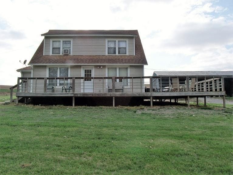 The peaceful feeling you will get by sitting on this deck is indescribable!!! Quaint and cozy home with hardwood flooring - large open kitchen, dining and living room! There is a bedroom and bathroom on the main floor with 2 very large bedrooms upstairs. Brand new siding, windows and doors on the home! Rural water meter prepaid by seller - so it will be coming! Large sweet corn patch/garden spot, 3 car pole barn. The wrap around deck is wonderful for grilling and outdoor entertainment space!