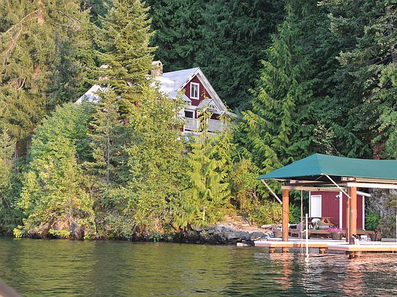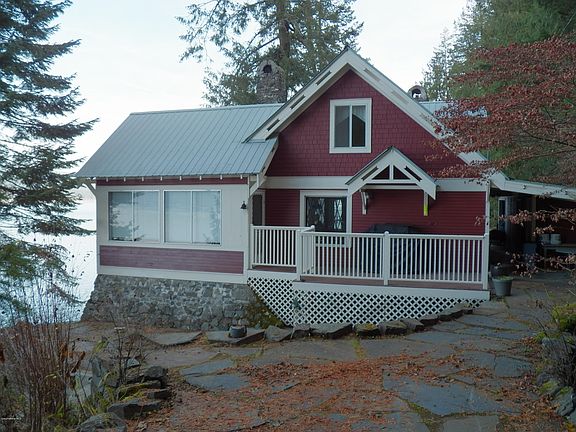 9.3 acres with 562 feet fronting Lake Pend Oreille on Eureka Rd. Breathtaking 180 degree views from Schweitzer Ski Resort, the Seven Sisters in the Selkirk Mnt. Range to the Cabinet Mnt. Range. Older 3 bedroom 2 bath home was updated with windows all along the lakeside to take advantage of those views. Newer dock complete with boat lift, shore power and great deep water mooring. Fronts county maintained road. Power, septic system are in. Water is drawn from lake and UV treated. Very private setting surrounded by tall evergreens and rocky outcrops. Short boat ride to town with multiple restaurants and shopping.. Lots of storage. Very unique stone patio and steps leading to waters edge. Includes garage for storage, with several parking places for RV's. Ultimate Privacy on large acreage!!!