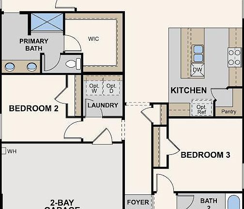 The single-story Camellia plan offers a thoughtful open-concept layout. A generous kitchen with a center island and corner pantry overlooks a great room and charming dining area. A spacious primary suite features a private bath and roomy walk-in closet. You'll also enjoy a convenient valet entry off the two-bay garage with access to a laundry room. Three secondary bedrooms complete this inviting floor plan.
