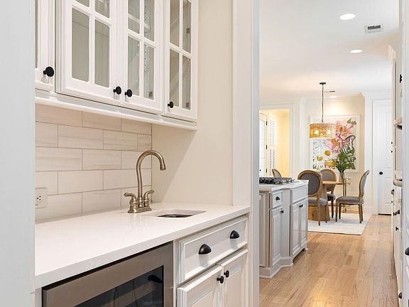 A move-in ready corner lot gem in the highly desirable Smythe Park neighborhood, this home welcomes you with a southern-style front porch adorned with gas lanterns and a porch swing. Upon entry, the front hallway is flanked by an office featuring custom built-ins and a formal dining room with adjacent butler's pantry with wine refrigerator. The gourmet eat-in kitchen is a chef's dream, boasting high-end stainless steel appliances, a large island with seating, quartz countertops, and ample cabinetry. This space seamlessly opens to a spacious family room filled with natural light and accented by a gas fireplace. Upstairs, the luxurious primary suite with new hardwood flooring offers a tranquil retreat, complete with a spa-like bathroom with a generous walk-in closet. Three additional bedrooms, each with ample closet space, and easy access to the laundry room. The flexible third-floor space, complete with a full bath, offers endless possibilities as a fifth bedroom, play area, or media room. Outdoors, the spacious back porch, enhanced with shutters for privacy and a TV bracket, opens to a beautifully manicured, fenced-in yard with an upgraded irrigation system. This inviting space is perfect for entertaining family and friends or simply relaxing in style. Two car garage.