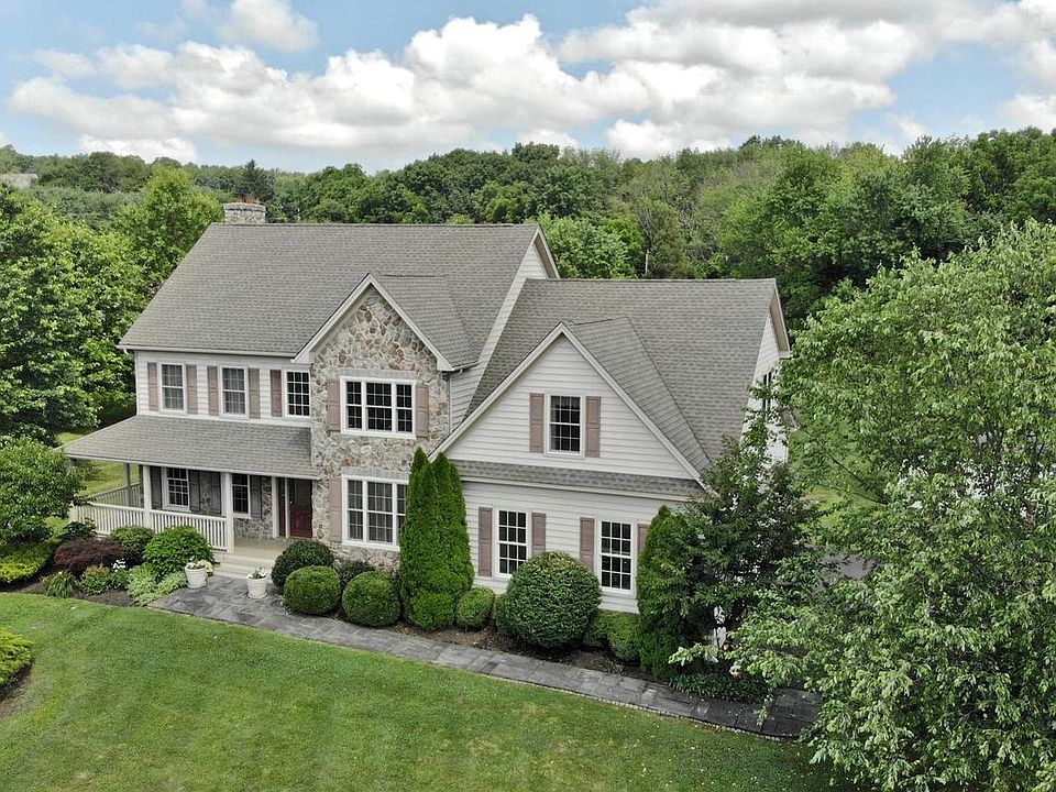 Buyers were unable to obtain financing so back on the market! Beautiful home with access to Lake Nockamixon - walk right across the driveway and down to the lake. It's that easy! There's nothing more calming than a view of the water and, with this home, three seasons of the year you can look right out your front windows and out to the lake. A wrap around rocking chair porch, large lot and chemical-free inground pool and deck mean that it's a pleasure to entertain and enjoy the beautiful surroundings. Inside the home a two story entrance hall with the hardwood floors found throughout most of the first floor is flanked by the office and formal dining room. The office has glass French doors and could be used in many different ways. The family room features deep crown molding, wainscoting and a wood burning stone fireplace. This is a warm comfortable room open to the breakfast area and gourmet kitchen. Handsome cherry cabinetry, double wall ovens, cooktop and counter seating make food prep a pleasure. The open floorplan means that you can cook, entertain and enjoy the fireplace. A butler pantry connects the kitchen and dining room. The main floor laundry and half bath complete the first floor; with the laundry room having a separate entrance to the driveway so it can also perform as a mudroom. Rear stairs bring us to the second floor with the master bedroom at the end of the long hallway. Dramatic tray ceiling, plush carpeting, two walk in closets and a separate sitting room means that you can really stretch out and relax. The master bath has all the bells and whistles; double sinks, built-ins, Kohler soaking tub and a separate glass enclosed shower. Three large bedrooms share a beautifully custom tiled hall bath. The basement is partially finished with a two level home theater. The reclining theater seats with cup holders are included! Three car garage, brand new two zone heating, two new water heaters, oversized garden shed and much more midway between Perkasie and Quakertown.