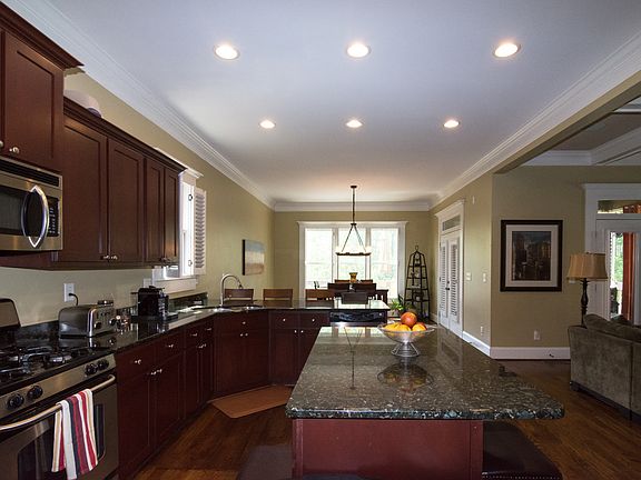 Beautiful Craftsman style home with coffered ceilings, hardwood floors, open floorplan, huge kitchen with island, granite countertops, stainless steel appliances & butlers pantry. It has an eat-in kitchen and a separate dining room (although current owners are using the dining room as an office). The 3rd floor has been completed with an extra bedroom or living area & a full bath. This home has tons of space inside & outside with 3 porches (front porch, screened porch and back porch) and a large fenced in yard. This is one of the largest floorplans in the subdivision.