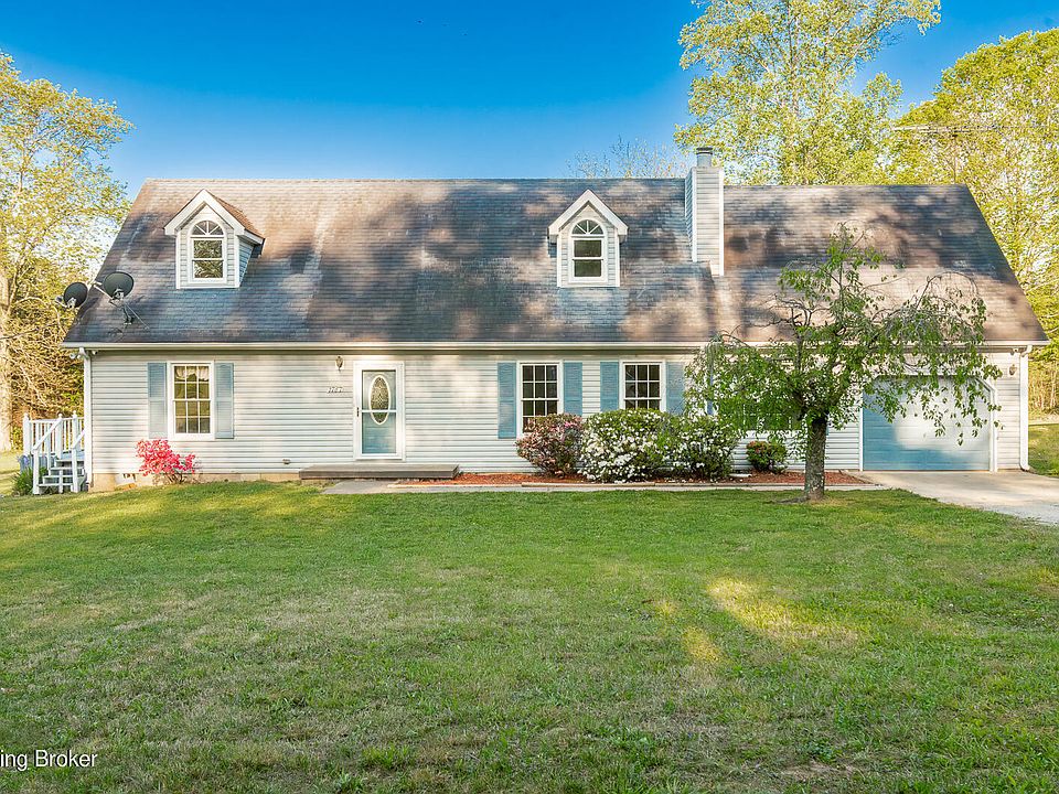 Charming 3 bedroom, 2 bath Cape Cod nestled on a 2 acre lot in Boston, KY! This home boasts a first floor primary bedroom, attached garage, and a wrap around deck that overlooks the sprawling back yard. The living area has a fireplace offering a cozy environment to greet your guests. The spacious eat-in kitchen has plenty of room for a good sized table and direct access to the deck for outdoor grilling or entertaining. The first floor primary bedroom has a tray ceiling and direct access to the primary bathroom that has a convenient shower/tub combo. Also on the main floor is an oversized mudroom that would be the perfect place for a large hall tree or any kind of storage you choose! Make your way upstairs where you will find 2 additional bedrooms and a full bathroom as well as a separate room that could serve as a sitting room, office, or whatever suits your needs! Make sure you get a chance to see this beautiful house and make it your new dream home - schedule a private tour today!