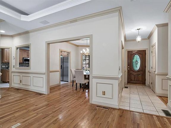 Gas fireplaceLarge finished basementBrick homeTray ceilingsHardwood floorsFresh paintSpacious deck