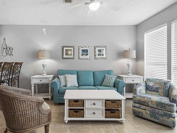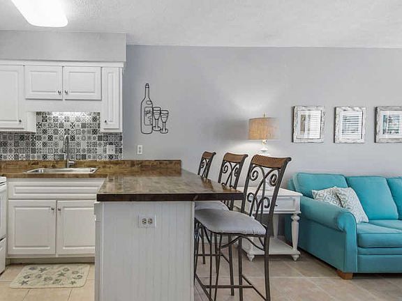 Rarely available ground floor 2 bedroom and 3rd room with 2 single beds. Sleeps 8 comfortably. This TRIPLE 3 condo is just steps to the beach! 3 sleep rooms, $319,000 selling price and $361 per month HOA. While parked directly outside the unit, you can easily unpack your car and walk across the street to the sandy white beach. This unit was remodeled making the original dining room a sleep room. Remodel includes new butcher block kitchen counter tops, new tile back splash, new paint, old wall paper removed, all tile floor and grout steam cleaned, new ceiling fans and some new glass. This complex has recently undergone a complete exterior renovation including hardie board siding and a new roof with all assessments paid. These are excellent rentals. ALL YOU NEED IS YOUR TOOTH BRUSH!