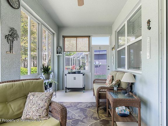 Like-new home situated on golf course in the beautiful, gated community of Hernando Oaks. This home has been meticulously maintained in every detail inside and out. As you step inside, you'll be greeted by a long foyer that invites you to the spacious living area boasting modern ceramic tile flooring which creates a seamless flow throughout the home. The heart of the home, the kitchen, is a chef's delight, featuring exquisite granite countertops, stainless steel appliances, and a large, convenient pantry for ample storage. The kitchen/great room combo makes the space perfect for a dinner party with your guests. Off the kitchen, the large primary bedroom features en suite bathroom, complete with a dual sink vanity, granite countertop, walk-in shower, and generously sized walk-in closets, offering both style and functionality. The versatile guest bedrooms on the opposite side of the home offer flexibility for guests, home office space, or hobbies, ensuring comfort and convenience for all. The highlight of this residence is the inviting rear lanai which is fully enclosed with windows, where you can unwind and soak in breathtaking views of the golf course, creating a serene backdrop for gatherings or quiet moments of solitude. Conveniently located within Hernando Oaks is The Oaks Grill where you can enjoy a bite to eat after a round of golf or choose any of the nearby restaurants located in historic downtown Brooksville. While you're busy having fun, have peace of mind knowing that your lawn will be maintained by the HOA. Don't miss the opportunity to make this well-kept home yours and experience the Florida living at it's best. Schedule your showing today!