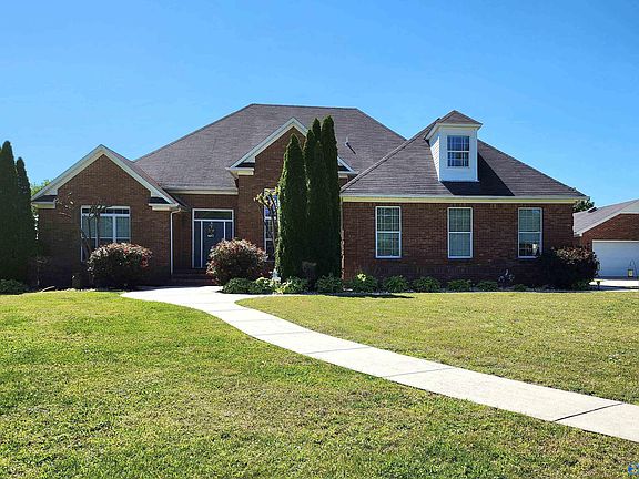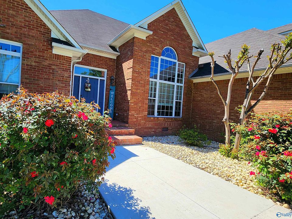A MUST SEE! This gorgeous full brick 4 bed/ 4 bath home is LOADED! Open floor plan w/ stunning ceiling heights, HW floors in main areas. Beautiful double sided fireplace is a majestic focal piece leading from the living room over to family room. Large eat in kitchen boast tons of custom cabinetry, island. Isolated primary w/glam bath and connecting private office or study. Guest Bedrm w/private bath. Laundry room. Upstairs bonus rms are perfect for exercise, music or even as guest suite. Walk in attic storage. Out back, the lovely sunroom opens out onto large barbecue patio. Attached 2 car garage. Separate garage/workshop. Large INGROUND POOL w/walk around. PRIVACY fence. Mins from Hsv!