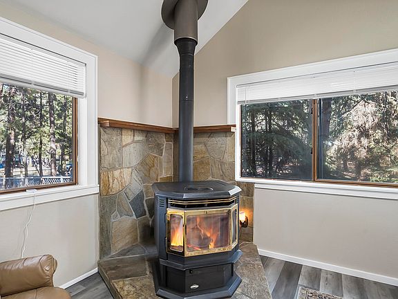 Are you looking for an updated home surrounded by nature? This home nestled on a quiet cul-de-sac, backing up to BLM land is for you! Spend your mornings sipping coffee from the expansive deck or upstairs balcony, and your evenings warming up in the cedar barrel sauna. Enter into the living area with 16ft ceiling and enjoy the open concept kitchen and dining. One bedroom and updated bath on the main floor with the primary suite, balcony, and additional closet on the second. With a three and a half car garage and carport you are guaranteed space for all your toys. This acre lot is fully fenced with three gated entrances in front and direct access to BLM land through the back gate.