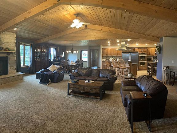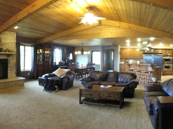 Brick Ranch on the Edge of Sterling! Over 3,000 sq.ft., 4 bedroom, 2 1/2 bath home in Quiet Acres Subdivision. This home was quality constructed in 2003. Features an open concept floor plan with beautiful vaulted wood ceilings and a gas fireplace. Spacious dining area to accommodate large gatherings. High end kitchen with stainless appliances, granite countertops, double oven, gas cooktop with hood, walk in pantry, and rolling island. Breakfast bar. Spacious master suite with 3/4 bath, huge walk in closet, built in cabinet. All nice size bedrooms and main bath. Guest 1/2 bath. Main floor laundry with granite folding table. Six panel doors and upgraded wood trim throughout. Price reflects the need for new flooring on the main level. Full basement, partially finished with 26x40 family/game room with heated tile floors, office/non-conforming 5th bedroom and 1/2 bath. Lots more basement space to finish plus tons of storage space. Furnace and air conditioner - 2 years old. 2 water heaters- 2007, 2004. 3 sump pumps. Under sink RO system. 4 car heated, attached garage with floor drain, 45'x30'. Concrete driveway offers plenty of parking. Paver Patio, deck and gazebo in the huge backyard (1.3 acres apx) with gorgeous countryside views!