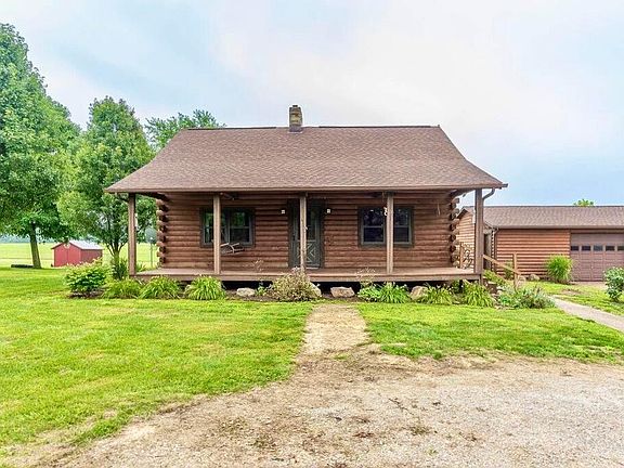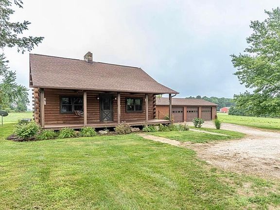 Nice Custom Log Home situated on 1.275 beautiful country acres! This home features 3 Br & 2 full BA. Cabinet filled kitchen w/solid surface countertops providing an awesome dining bar for added eating space. Adjoining dining area, Huge Owner's suite w/ private bath & ample closet space. Vaulted ceiling living room highlighted by a gorgeous stone fireplace w/wood stove insert. Awesome log sided 3 car garage with concrete floor, electric, & water measuring 50x24 - Perfect for the car enthusiast or just extra storage space. 40x20 pole barn w/attached 20x20 barn w/water & electric & currently containing 1 horse stall. Recent updates include-staining of entire exterior of home, new roof (2020-complete tear off) on home & log sided garage, pressure tank (2020). Forced air heating & Central a/c.