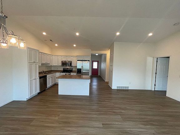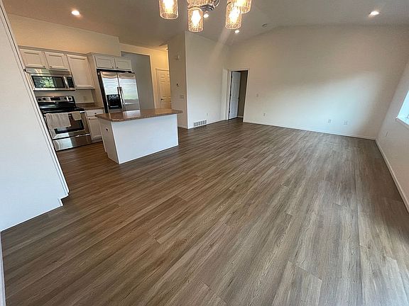 Fenced in back yard (done by Dakota Fence) with a large wooden shed. The interior is all laminate flooring installed in 2019, white cabinets and trim, high vaulted ceiling in open concept living dining kitchen area. Energy efficient. Electric bill averages $73. Gas bill average is $47. Water/trash pickup bill is approximately $70 per month. Finished heated 2 car garage. Quiet lovely neighborhood. The home is a middle unit of a 4 family townhouse. No HOA or fees.
