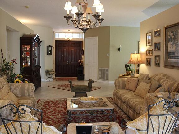 Fabulous bright, open, clean, move-in ready home in the prestigious community of Oakmont in Madison Green. This open floor plan offers 4 bedrooms, 2 full baths and 2-car garage. The kitchen provides ample storage and counter space with upgraded wood cabinetry. Enjoy diagonal tile flooring in the family room, living room, formal dining room, bathrooms and kitchen. Features include his and her walk-in closets, plantation shutters throughout the house, master bathroom w/Jacuzzi and separate shower, bright and open family room with French doors leading to an inviting screened patio that overlooks lush landscaping. Recently painted on the inside and outside. All this is in the highly desirable, non-equity golf community of Madison Green. Steal this home and move right in!