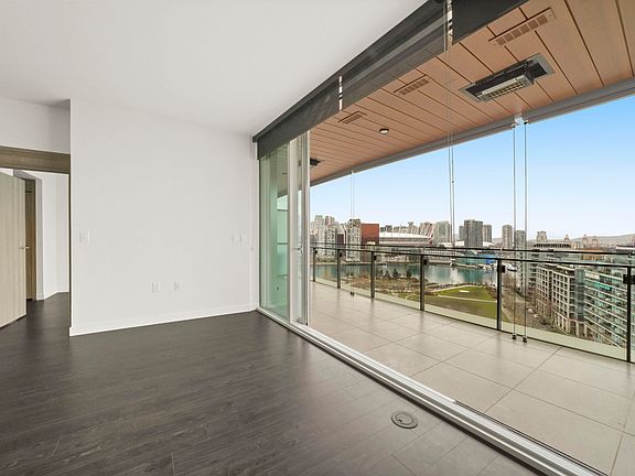 Unrivaled views w/waterfront lifestyle at Avenue One in desirable Southeast False Creek! This 2 bdrm+den skysuite has a timeless classic design w/planned functionality for luxuryliving. Living area opens up to extra large 270sf balcony w/sliding doors for unbeatable views. Balcony incl. solar shades, wood-look panel w/radiant ceiling heaters. Beautiful finishes &backsplash in gourmet kitchen ft. gas stove, SS Miele appliances & wine fridge. Master bdrm ft. 5-piece spa-like bthrm w/deluxe lighting, his&hers closet thoughtfully designed w/built-in units. Intelligent thermostat to optimizes energy efficiency. 2 parking side-by-side w/EV+1storage. Steps away from the seawall & urban conveniences. Expansive amenities incl. exercise room, auto touchless car wash, lounge, etc. OH SUN MAY 14 2-4PM
