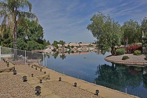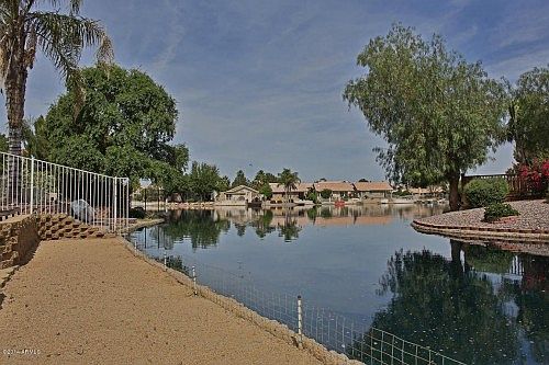 Beautiful Waterfront Views. This lakeside home features 3 bedrooms, 2 baths, vaulted ceilings, great room, eat in kitchen, spacious covered patio, terraced entrance to the lake, ample garage storage cabinets and a work bench. Master bedroom with views, walk in closet, separate tub and shower and dual sinks. Community amenities include: heated pool, spa, clubhouse, tennis courts, walking paths and children's play area. Wonderful location on a cul-de-sac near freeways, shopping, schools and historic downtown Chandler.