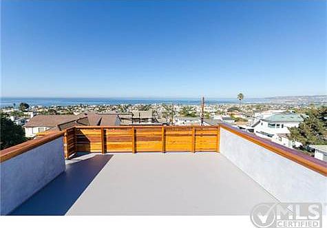 Contemporary flare with craftsman accents create a perfect combo for this new custom rebuild! Light & bright open floor plan with premium fixtures & upgrades throughout. Located at the peak of the hill with ocean views from your gourmet kitchen & master bedroom with long wrap-around balcony. Unobstructed panoramic ocean, bay, & valley views from your rooftop deck- just imagine the stunning sunsets!! Private backyard, 2 car garage (single door entry), downstairs bedroom and bathroom. Just blocks to downtown O.B. & the Farmers Market on Newport Ave. This is a rare find! Home Features: Viking Professional appliances, Convection Microwave, Quartz countertops, full glass backsplash in kitchen, Danze Parma commercial style kitchen faucet, kitchen pendants from Justice Design Group, glass windowed 2nd level of upper cabinets, slow-close cabinet doors throughout, 9' ceilings throughout, 'handscraped' birch hardwood floors throughout, full redwood fence, redwood railings on all decks, redwood trellis over front door, 335 sq ft roof deck with panoramic coastal, ocean and bay views, galvanized one-piece steel spiral staircase from ground level up to roof deck, GFCI outlet on roof deck, master bedroom French doors leading to wraparound 2nd floor deck with access to roof deck stairs, Milgard Tuscany casement windows (dual pane/Low E), entire house extensively insulated, ultra-low flush toilets and faucets, 30-year architectural shingle roof, custom stone and tilework in bathrooms, including: travertine, Carrera marble, glass surrounds, and quartz and soapstone countertops, set up for central AC (seller will install AC condensor prior to COE), fully landscaped and irrigated, all concrete flatwork is acid-washed, fully sprinklered, Danze Parma shower fixtures, 6" cove moulding throughout, 6" square edge baseboard throughout, all windows fully cased, ultra smooth stucco finish with FoamTek base, windows and exterior doors trimmed with J.P. Hardie Artisan trim, TM Cobb Conmore semi-solid core interior doors with satin nickel lever-style hardware from Philadelphia Hardware Group, mahogany and glass front entry door and pedestrian garage door, 4" LED recessed lights throughout all common areas bathrooms and master bedroom, ceiling fans in living room and all bedrooms, tankless water heater, house hardware is exclusively stainless steel and satin nickel, custom-built powder-coated steel railings and handrails on interior stairwell.