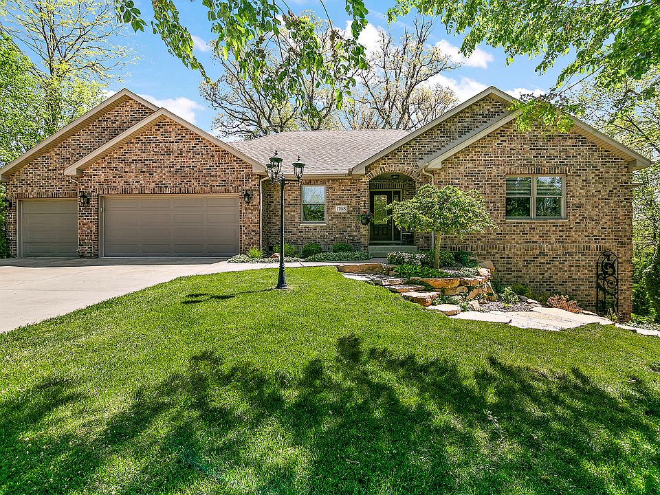Nestled below the trees canopy, surrounded by a peace that only nature can provide is your serene retreat in the sought-after River Crossing subdivision of Limestone! This pristine walkout ranch offers the perfect blend of luxury and functionality, with the option for related living. With 4-5 bedrooms and 3.5 baths, including a master suite and secondary master suite, this home provides ample space for comfortable living. The inviting living room features a coffered ceiling, a stunning brick fireplace, and hardwood floors, creating a warm and welcoming atmosphere. The dinette area boasts sliders that lead to a covered back patio, offering breathtaking views of the surrounding landscape. The gourmet kitchen is a chef's dream, equipped with stainless steel appliances, custom maple cabinetry with granite tops, an island, and a walk-in pantry. The main level master suite boasts a luxurious bath with double sinks, a tiled shower, a freestanding tub, and a huge walk-in closet. French doors open to a spacious office, perfect for remote work or study. The lower level offers additional living space with a full kitchen featuring granite countertops, stainless steel appliances, and heated floors, as well as a second brick fireplace in the family room. Two generous-sized bedrooms, a full bath, and a full laundry room complete this level, with access outside to a covered patio. With a 3-car garage and proximity to hospitals, schools, and shopping, this home offers both convenience and luxury. Don't miss out on this exceptional opportunity-schedule your private showing today!