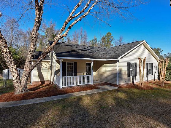 MOVE IN READY! One story home on nearly 1 acre lot backs up to WOOD BUFFER; Featuring an inviting FRONT PORCH, Recent Paint & Carpet, and OPEN FLOOR PLAN w/ FIREPLACE. Master has WALK IN CLOSET, DUAL VANITY, SOAKING TUB & separate shower. Enjoy lower Kershaw County taxes and quick access to schools, shopping/dining amenities. This is a Must See! Sqft approximate; buyer to verify.