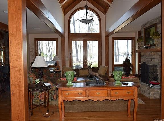 Architect David Moses designed this beautiful golf course home that is located in the Uwharrie Point Community home to the Old North State Club. Home is well appointed with near panoramic views of Badin Lake and the 16th green, 17th and 18th holes can be seen from the golf side deck and screened porch. The design of the home epitomizes a lake lodge design. Exterior finish is of rough sawn cedar board and batten and stone. Interior living areas have majestic wood cathedral ceilings and wood trim.
