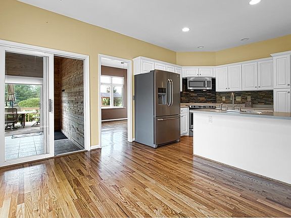 - RoomKitchenFeatures: Kitchen Island, Eat-in Kitchen, Wood Floor, Walkout, Wood Cabinets, Counter Bar, Window Treatment