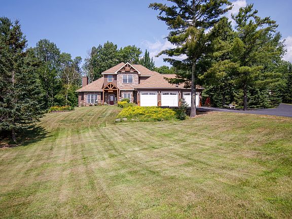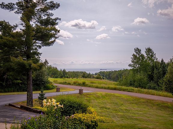 Perched high on the hill above Two Harbors, this one-of-a-kind custom-built home offers breathtaking, panoramic views of Lake Superior from nearly every room. Set on just under 4 acres of beautifully maintained land, this 4-bedroom, 3-bathroom property blends craftsmanship, comfort, and curb appeal in a truly unmatched North Shore setting. Step inside to discover Brazilian hardwood floors, a warm and inviting wood-burning fireplace, triple pane windows for energy efficiency, a kitchen designed for both everyday living and entertaining. With a strong architectural presence and impeccable upkeep by its original owner, the home exudes quality and character throughout. The 3-stall attached garage offers ample convenience, while the massive 51x32 fully insulated and heated pole shed provides endless possibilities—whether you're storing recreational toys, tackling projects, or running a workshop year-round.