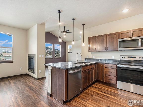 This beautifully designed condo is a part of the new Wildfire Subdivision. 1768 Wildfire Rd has eight condos and a variety of floor plans to choose from: a mix of 1, 2, and 3 bedrooms. This condo has three bedrooms and two baths with the following upgrades/options: Fireplace, Granite Counters, SS Appliances, Ceiling Fans in living room and bedrooms, soft close cabinets and drawers, washer, dryer, luxury plank vinyl flooring, one indoor parking garage and one outdoor parking spot. Early buyers have the option for upgrade AC and tile in bath tub and shower. This building was completed in February 2023. Sales office is at 851 Dry Gulch Rd. Call Gene Whannel at 970 481-7002 for an appointment. The subdivision has plans for 88 condos that are reserved for Estes valley workforce. To qualify for workforce you must average 30 hours a week over the course of the year and this unit must be your primary residence.