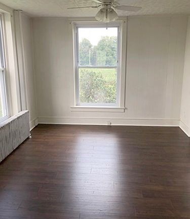 Eastern Schools-3 Bedroom renovated farmhouse. Bathroom with tub/shower combination. Eat-in kitchen with cupboards, countertops, stove, refrigerator, dishwasher and microwave. Living room, dining room, with faux fireplace. Out building for storage, lots of off-street parking. Private setting surrounded by active farm land. Tenant pays oil heat/hot water, electric, trash (well water and septic). No pets, no smoking indoors. 1 year lease term Tenants pay all utilities Washer/Dryer not included No pets No smoking