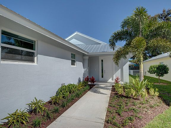 NEW BUILD! Contemporary Key West style home with upscale, modern finishes. This 4 bed, 2.5 bath home is complete with attached 2 car garage, metal roof, impact windows and doors. Gorgeous cathedral ceiling in main living and dining areas. The cook's kitchen boasts an oversized quartz island, silent-close cabinetry and all new LG appliances. Outside you will find a covered patio with two ceiling fan's overlooking the fully fenced, landscaped yard - great for entertaining and big enough for a pool! Centrally located in Jupiter's Cinquez Park. NO HOA. Zoned for A+ Jupiter schools.